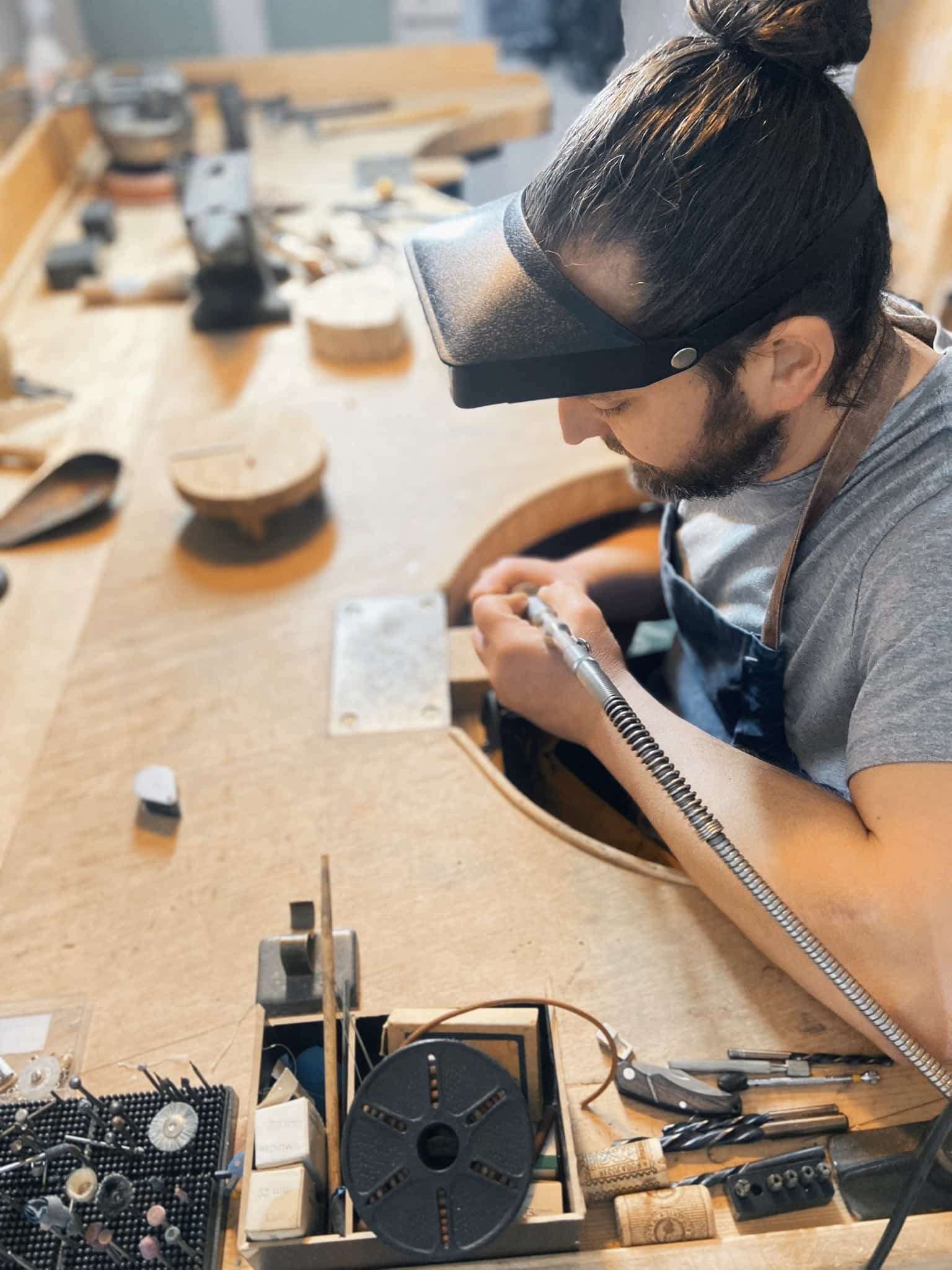 Ich bin gelernter Stahlgraveur, was die Kunst des Goldschmiedes und Fassers vereint. Durch Weiterbildung bin ich auch mit der Herstellung von Uhrgehäusen sowie der Arbeit an CNC Maschinen vertraut.